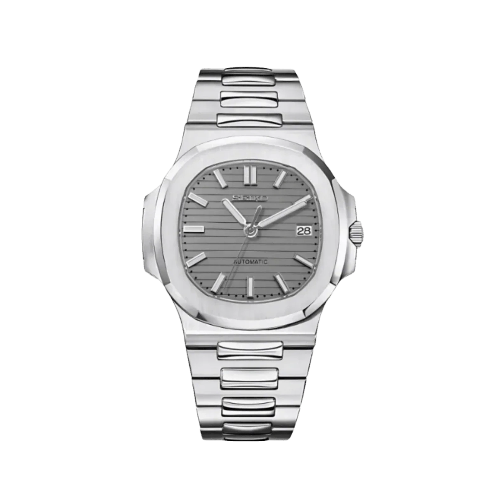 Inspired by the iconic Nautilus design, and featuring the prestigious Seiko NH35 automatic movement, we present the Seiko Mod Nautilus Grey.