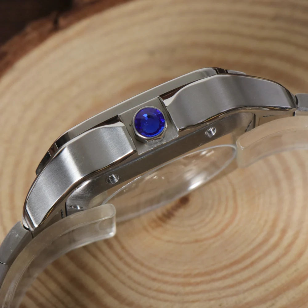 Inspired by the iconic Santos design, and featuring the prestigious Seiko NH35 automatic movement, we present the Seiko Mod Santos.