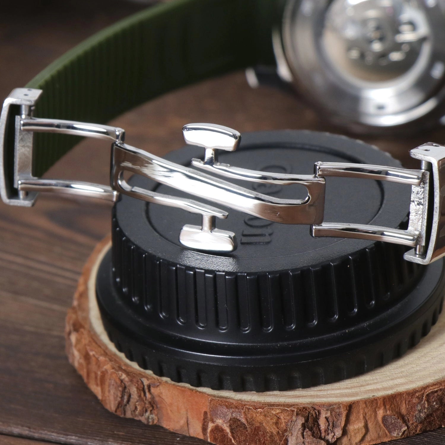 - Bracelet : Caoutchouc (avec boucle de sécurité de type papillon)